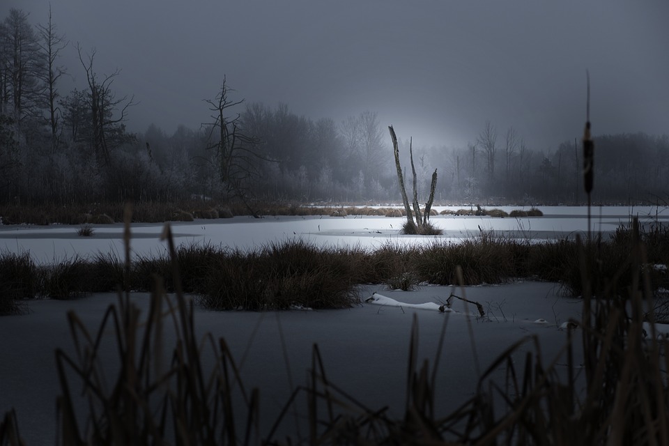 Голубое озеро зимой: